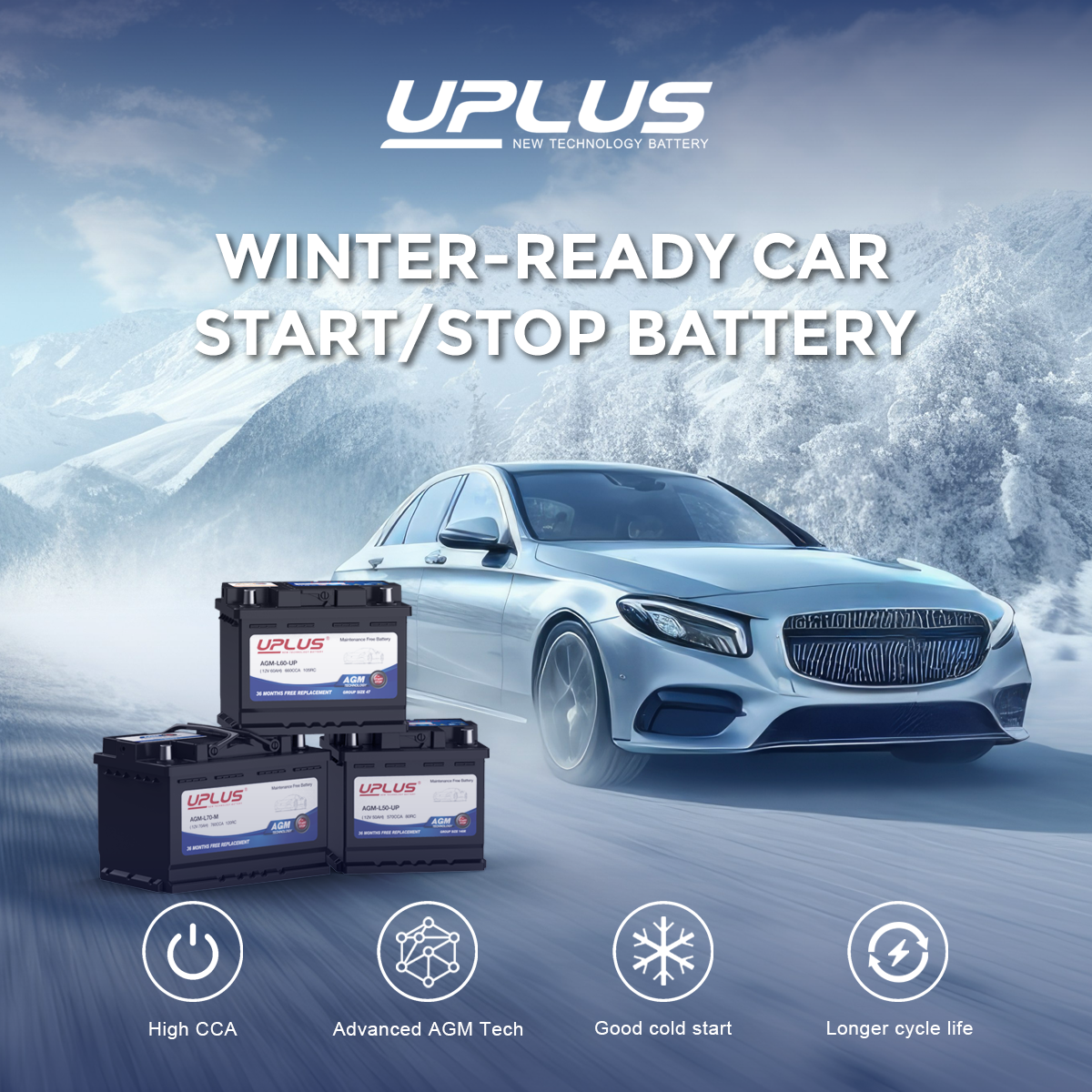 UPLUS H4/Group Size 140R Car Battery, 12V 50Ah Battery | Start/Stop Compatible