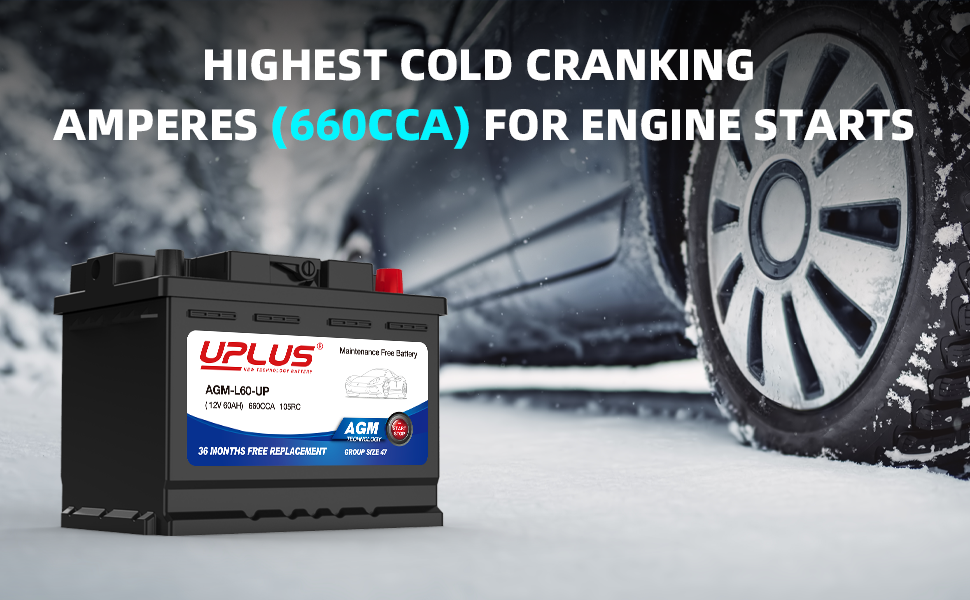 UPLUS H5 L2 BCI Group 47 Car/Automotive Premium AGM Maintenance Free Battery, 660CCA, 105RC [12V 60Ah]