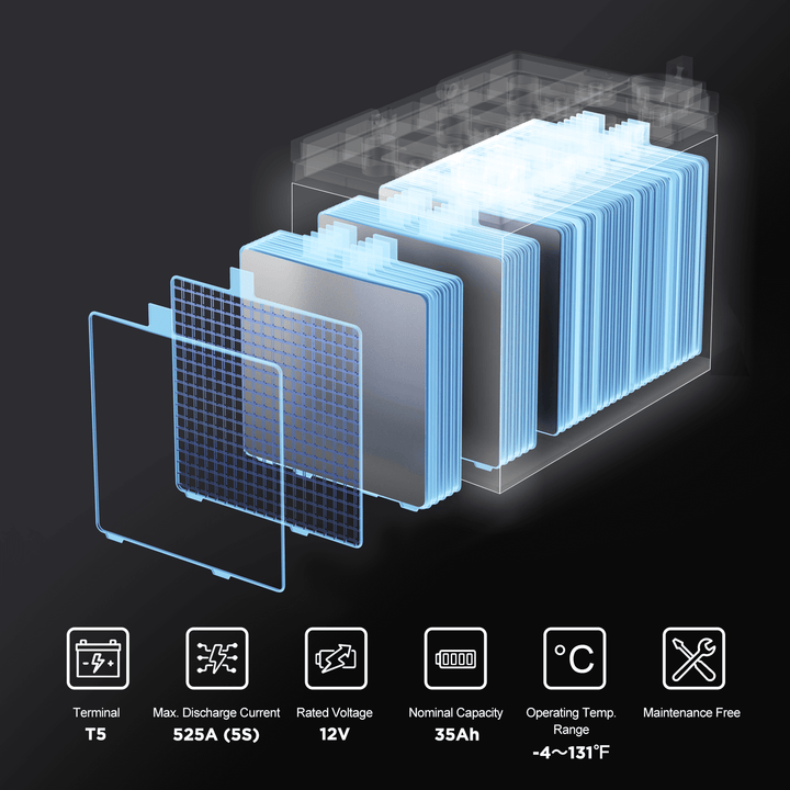 - Advanced Technology: Top-Quality materials and careful processing. With 99,9% above-average high purity level and corrosion resistant micro crystal structure. AGM processing technology, Maintenance-free, Leak proof.